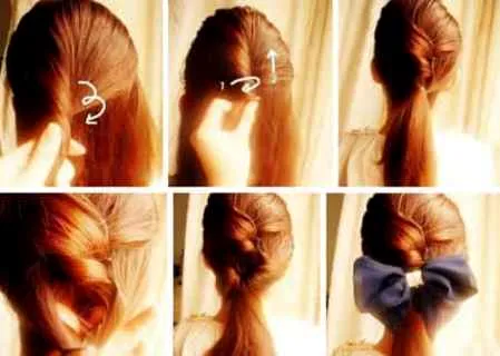 步骤六:最后在开洞的位置别上一个大大的蝴蝶结发饰,一款纯美典雅扎发发型就完成啦!打造迷人优雅气质。