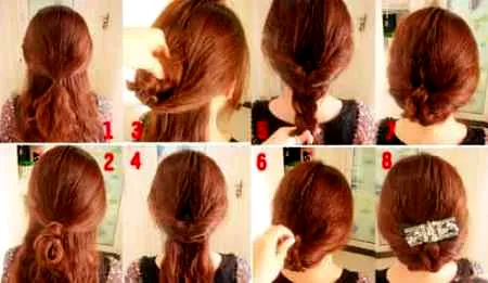 步骤五:将织好的辫子塞发尾塞进步骤三分出的那个界线中,用黑夹子固定好。然后在配戴一个自己喜欢的发饰,女王范就来了!