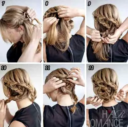 7-9、开始编第二条辫子,同样的方法,只在上面加头发,下面不用加。水平编到中间,才开始有弧度地编发。