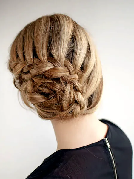 柔美并且优雅的弧形编发独特别致,看似复杂其实很简单,采用平时常见的**编发方法,将头发集中盘在一侧,制造出柔美妩媚的感觉,从而与新**靓丽服饰和谐一致。