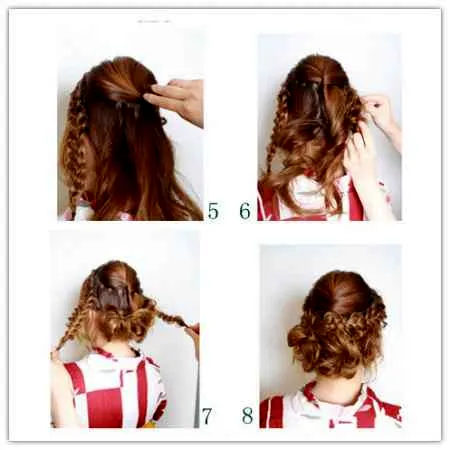 Step 8:将两条小辫子用发夹固定在发髻上面,这样就大功告成啦!赶紧动手试试吧!