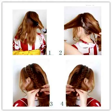 Step 3:将小束头发编成三股麻花辫。