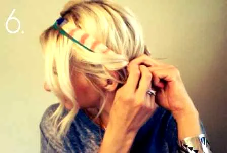 Step6:最后把事先预留出的刘海放下来,稍微塞进两侧的发带,营造出蓬松的感觉。