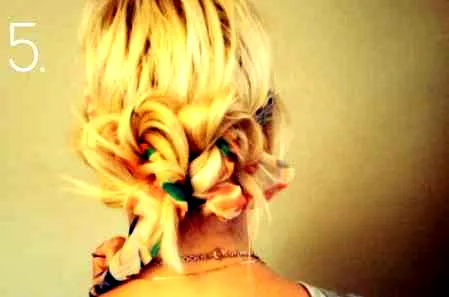 Step5:再将另一侧的头发按照逆时针扭转盘成一个发髻,同样塞进发带里固定好。