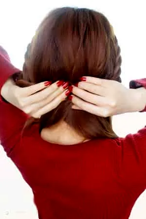 4、接着将第2撮加入到第3撮头发中,与第1撮头发旋转。