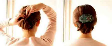 步骤六:塞进去后,用黑色的一字夹固定起来,避免松散,最后配上一款气质的发饰发夹,这样一款清纯柔美盘发发型啦!优雅抢眼的发型,你学会了吗?
