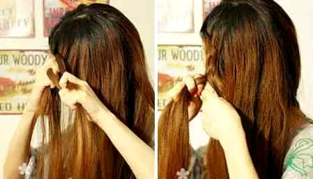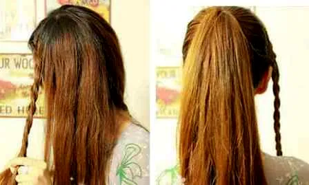 步骤5:将马尾处的发丝也编成简单的麻花辫,不用编的太紧,松散一点会显的更加**、甜美。