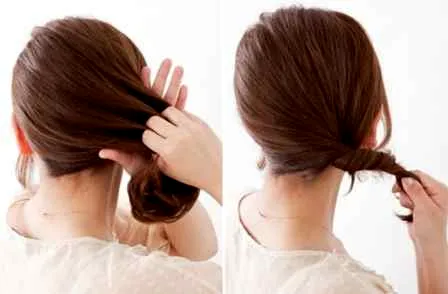 步骤2:将头发拨至一侧后,将发丝向一侧扭转,从图中可看出头发在拧转后,上面的头发呈现出自然的蓬松感。