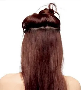 3、接着发尾处交叉回折盘在脑后,用夹子固定做发髻状。