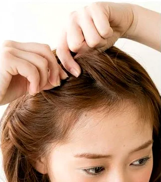 Step 2:将刘海与侧边的头发全部进行扭转,再用发夹固定好。