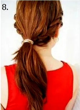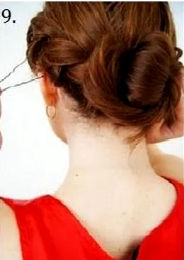 step9:将扎好的马尾缠绕成一个发髻,然后用U型发夹固定好。