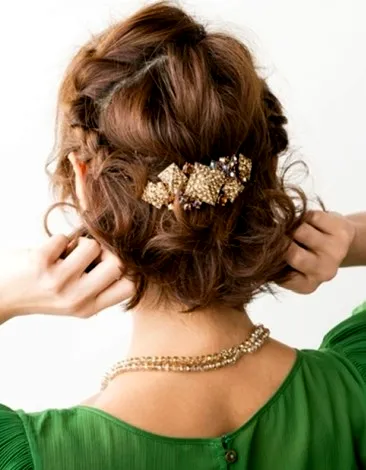 完成图:亚麻色的短发,微做卷后,编发与扎发的结合,时尚又妩媚,外俏的卷发增添俏皮感,充满了迷人女人味。