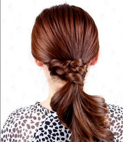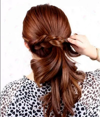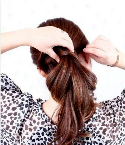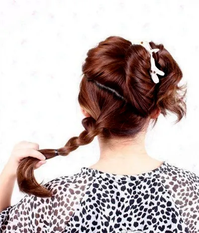 STEP 4:接着将麻花辫绕在马尾上,用钢丝夹固定发尾即可,一款简单的盘发发型就圆满完成了!