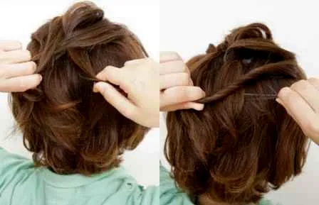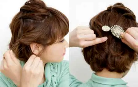 步骤7:两侧耳际处的头发取出来,进行扭转,然后别在后脑勺处。