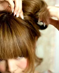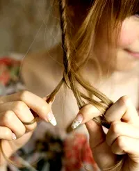 2、然后从右侧拿出一束头发。
