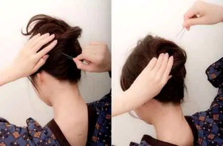 步骤5:将缠绕好成发髻的头发用夹子固定住,发夹可以用多一点,固定的紧一点。