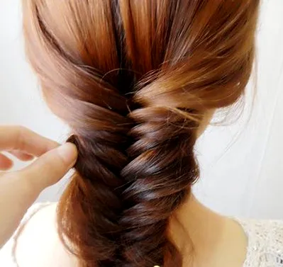 Step4:只有以此类推下来去,而鱼尾辫的编发特点本身就是要编织的越细越好,因为这样出来的编发才会好看。