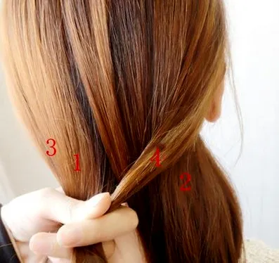Step3:但要注意的是,加上第3股头发的同时,要从1、2股头发中挑选出来,这样才能好继续编织下去。