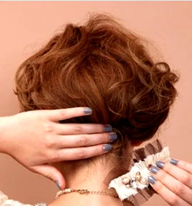 Step4:最后在剩余头发上,一把抓起弄出一个小马尾出来,进行倒梳的方法将整个头发进行打蓬,接着再用皮筋固定住,或则用发饰将皮筋给遮挡住,最后再别上一个发夹就完成了。