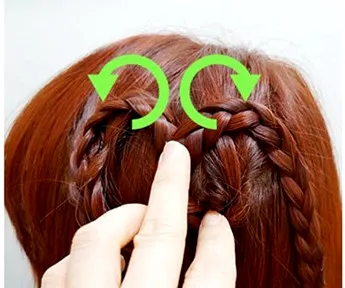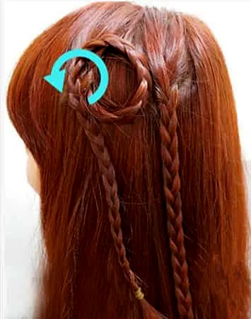 Step4:如图所示,将左侧辫子缠绕出一个圆形。