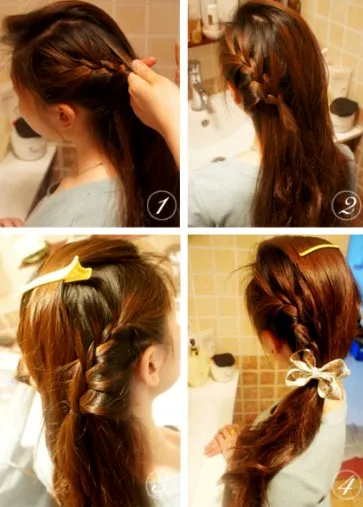 Step1:首先把头发披散在脑后,取一束左边的头发以三股辫的方式往下编。