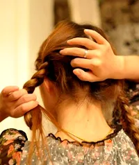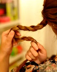 3、将头发分成3等份,进行普通的麻花编发。