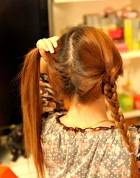 5、而左侧的头发就按照同样的方法进行编织。