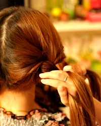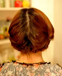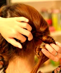 7、手先托住,不要让头发散出。