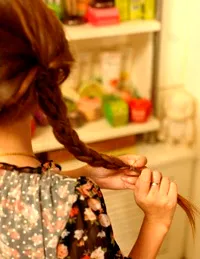 6、接着将头发折住用手拿住。