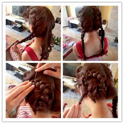 13、另外的一边按照同样的方法将头发盘好固定。