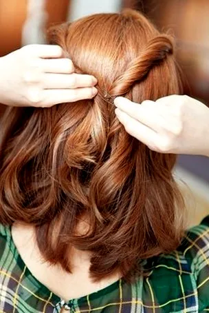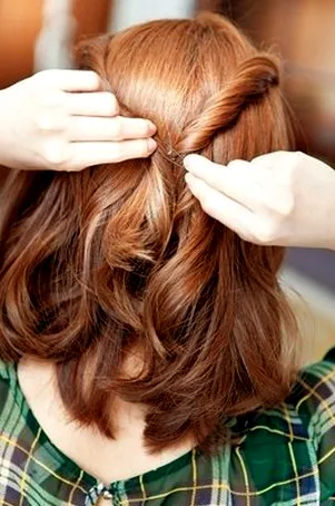 step1:先将头发弄成中分的样子,再分别将左右两边的头发各取出一束进行扭转,还可取适量发丝由外内扭转成束。