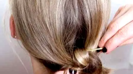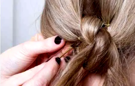 Step7:再用发卡固定第二个发结,还需要第3个发卡穿过两个发结之间固定。