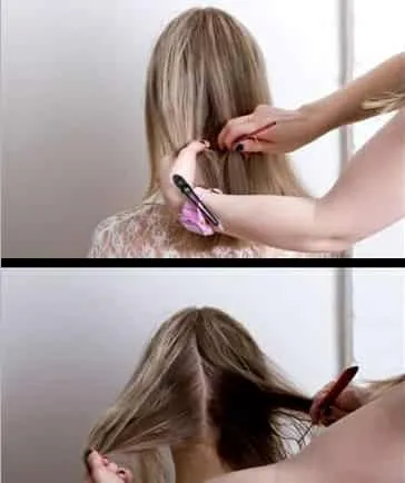 Step1:从头顶开始往后一直到后颈窝,用尖尾梳把头发均匀分成两部分。