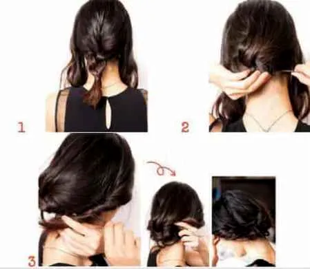 Step2:将马尾以内卷形式挽成内扣盘发,并用隐形发夹进行固定。