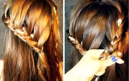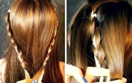 Step5:两条辫子编好后,用手拉住,效果如图所示。