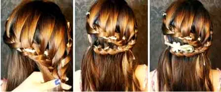 Step4:左边编好后,右边也以同样的方法编成蕾丝辫子。