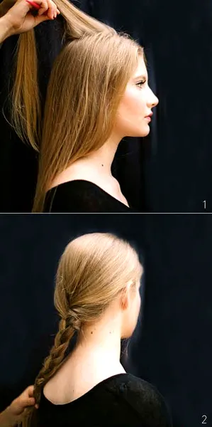 STEP 2:然后,将所有头发聚于一侧,看你是喜欢左侧还是右侧。图示左侧,开始普通的三股编发。