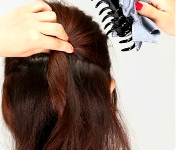 步骤4:用蝴蝶结抓夹固定在发圈扎发的位置,掩盖住发圈的痕迹。