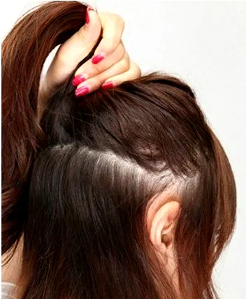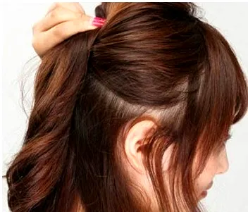 步骤1:将头发以耳朵上方为界限分为两部分,把上半部分的头发扎起。