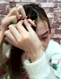13、为了凸显青春度,将发尾处用卷发棒卷一个弧度,旁边的头发也可以稍微卷一下。