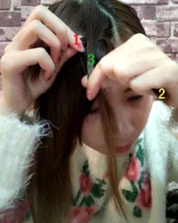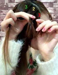 8、从底下取一股头发,蓝色圆点标注的部分。