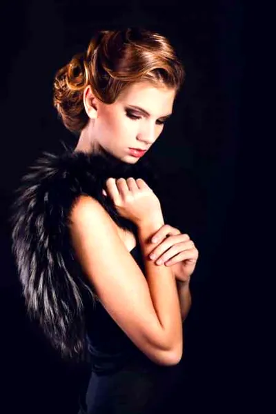 Step1:抓起头顶上半部分头发,扭曲旋转左侧头发至后脑勺,并用发夹固定。
