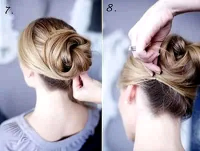 Step5:最后一撮头发主要固定在发苞头的外围就好。