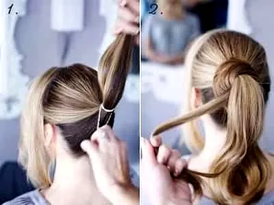 Step2:然后取马尾中的一小搓头发环绕头发根部,因为是第一束头发所以紧点能方便后面头发的缠绕。
