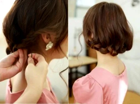 第五步:用黑色发夹固定发型,可以喷上定性喷雾,让发型更加持久。