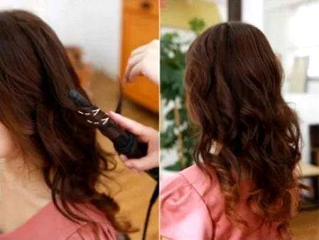 第一步:将长发用卷发棒向外卷曲,打造出有图中的效果。