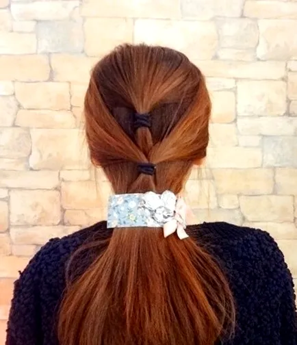 步骤三:用黑色橡皮筋固定后选择一款自己喜欢的发饰佩戴即可。