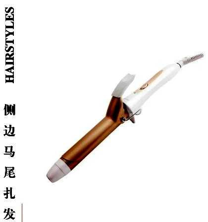 Step1:先是将蓬松的中长发平铺开来之后,将卷发棒将些许发束进行卷曲的处理,这样在接下来的发型塑造中会简便许多。之后用卷发棒,取出一些小束头发,很有规律的将发尾进行卷曲的塑造。