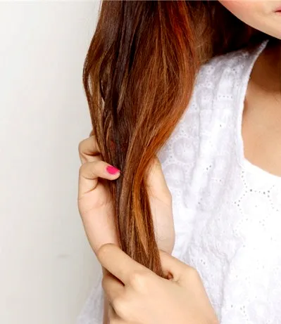 Step1:首先将头发涂抹上一层护发素,这样粗糙的头发也会变得非常柔顺又轻松梳理许多。