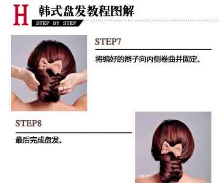 Step3:编织好后, 在低扎编织的地方可以别上一个蝴蝶结,接着再在头顶的地方喷上一些啫喱水,让整个发型都定格起来。